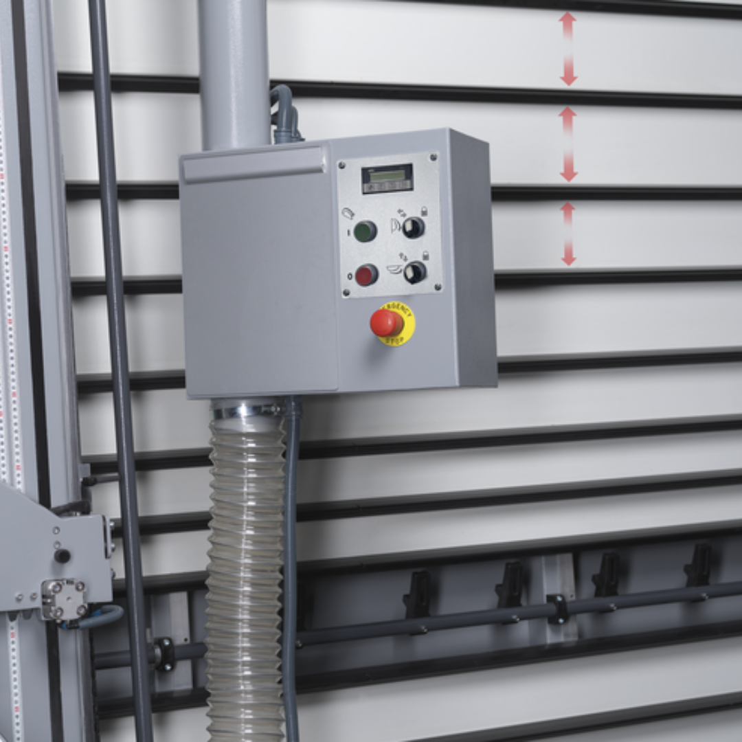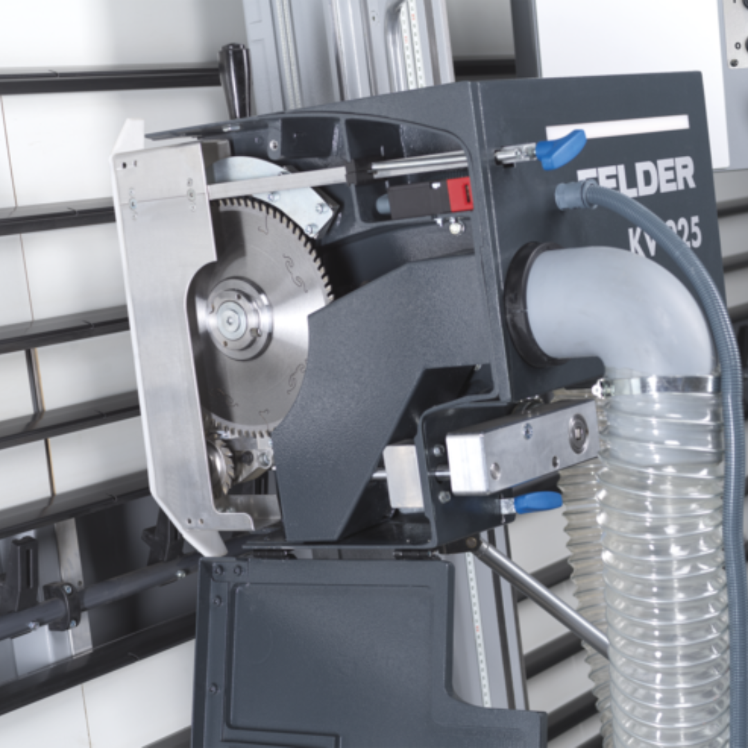La Felder KV 925 representa el estándar más alto en sierras verticales para uso industrial. Con capacidad de corte de hasta 60 mm de espesor y longitud ajustable hasta 5 200 mm, esta máquina permite manejar paneles de gran tamaño con una eficiencia superior. Entre sus principales características técnicas destacan: